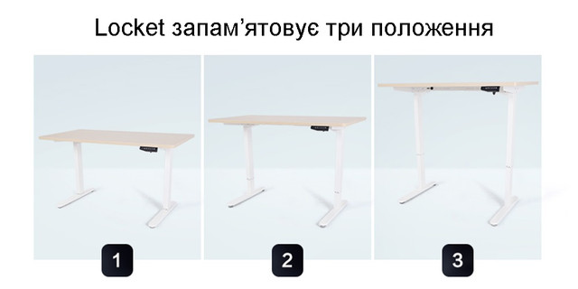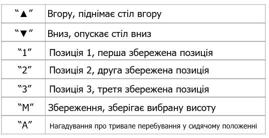 Скидання налаштувань перед першим запуском, LED дисплей показує ”ASГ”, натисніть ”▼” і тримайте допоки стіл не дійде до найнижчого положення і підніметься на висоту 75 см, дисплей покаже ”75.0”, скидання завершено.
